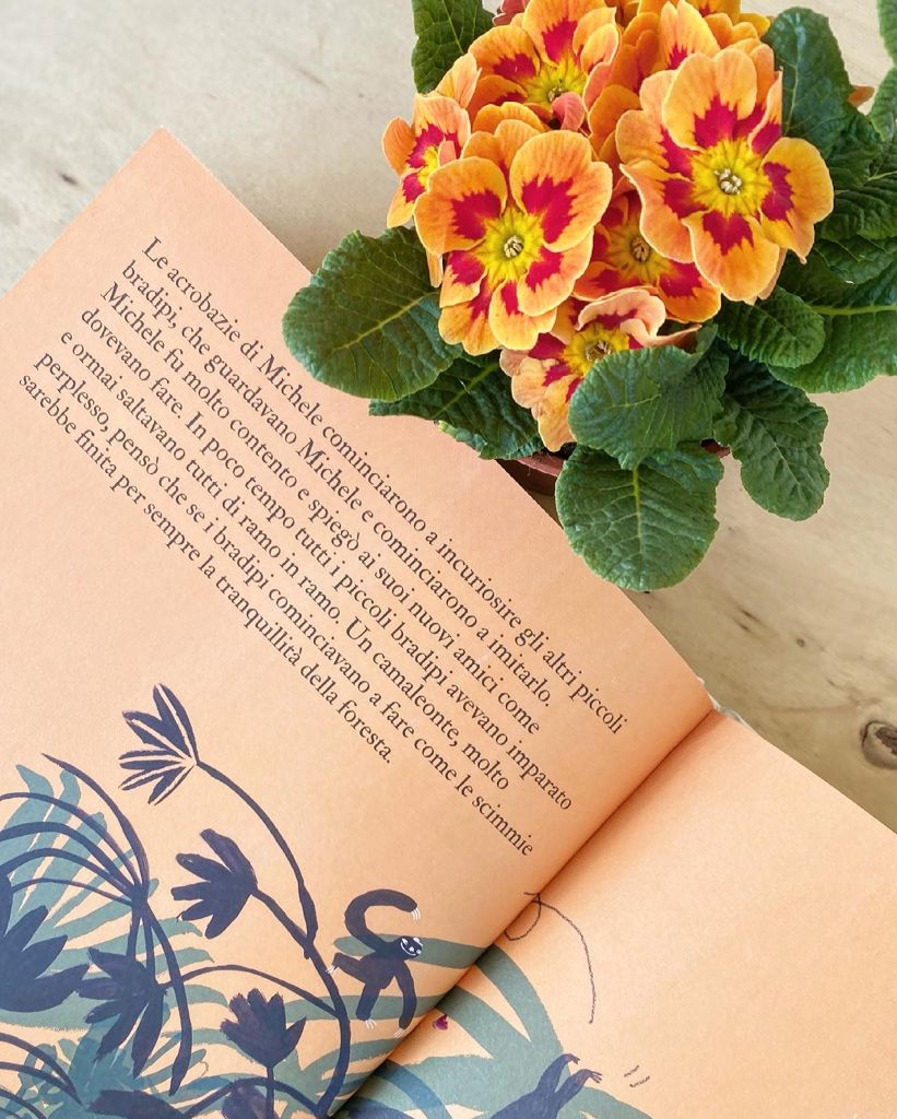 Come in “Fai Piano Michele”, il libro edito da @edizioni Clichy, in cui un padre bradipo, per natura molto calmo e molto lento, si trova ad avere un cucciolo come Michele: un bradipo che vuole imparare a saltare da un ramo all’altro, iperattivo, super agitato, a cui non piace troppo dormire. E questo non fa contento il papà di Michele, che più volte gli chiede di smetterla.